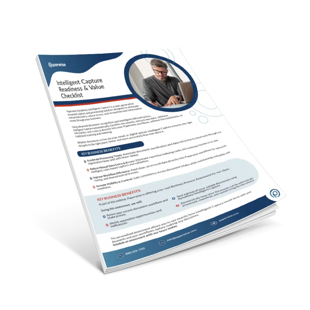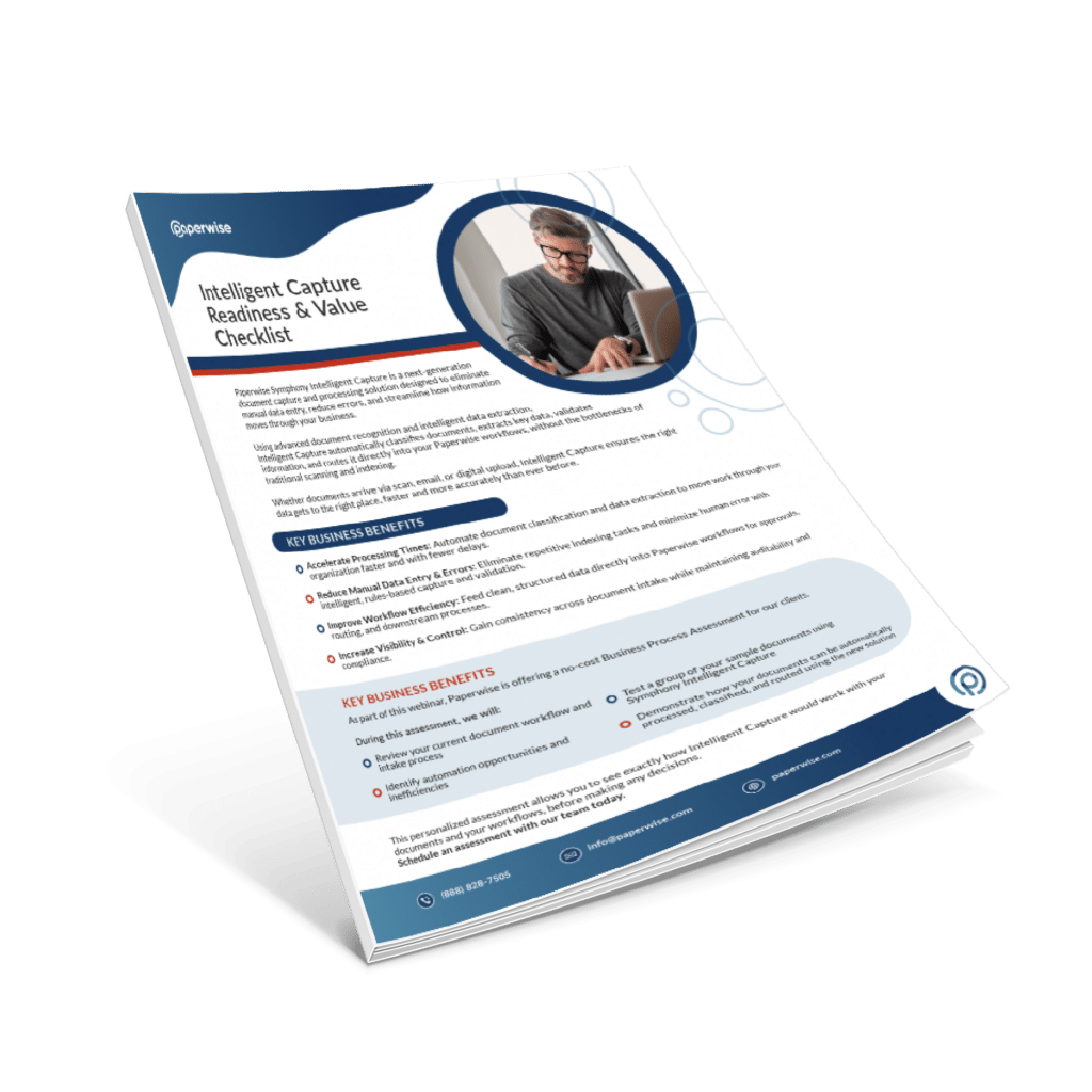 Paperwise Symphony Intelligent Capture is a next-generation document capture and processing solution designed to eliminate manual data entry, reduce errors, and streamline how information moves through your business.
