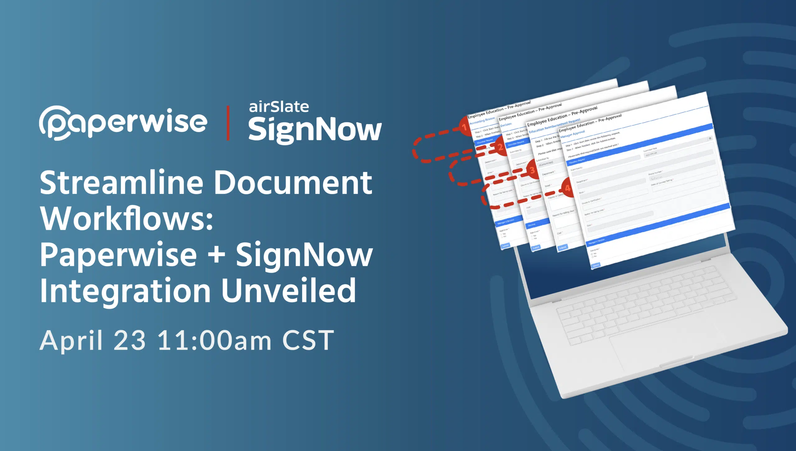 Paperwise is inviting you to our live webinar taking place April 23 at 11:00 AM CST, where we’ll be exploring our new integration partnership with SignNow that is set to simplify your document approval workflows and bring even greater efficiency to your processes.